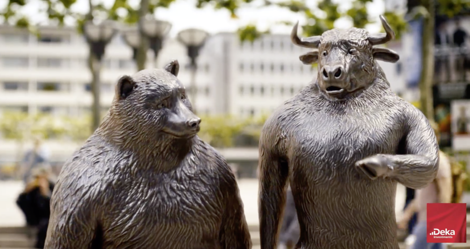In the financial world the bull & bear symbolize the rising and falling stockprices, i. e. the bull and bear markets.Two bronze sculptures (bull ans bear) are located in front of the stock market exchange building in Frankfurt.